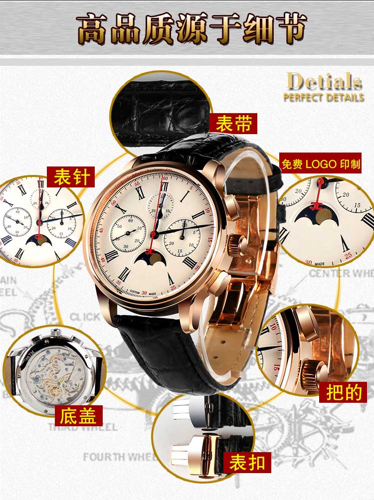 高檔商務(wù)機械手表可定做logo手表廠家對接