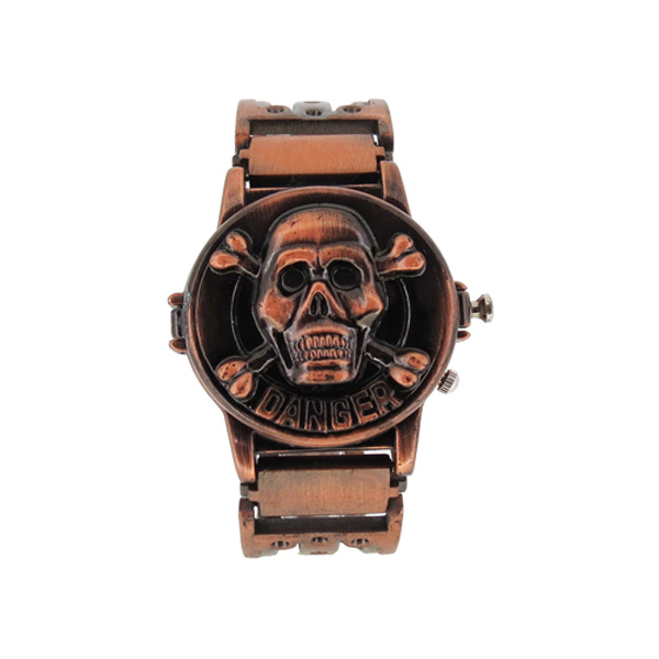 這款個(gè)性手表用整個(gè)骷髏頭覆蓋了整個(gè)表蓋,骷髏頭面目猙獰兇惡給這款個(gè)性手表營造了一種恐怖詭異的氣息,骷髏頭下面DANGER的標(biāo)志向人昭示著此物危險(xiǎn),請小心,這款骷髏頭個(gè)性手表的表盤和表蓋都采用紅古銅,紅古銅與黑色的搭配充分體現(xiàn)了這款個(gè)性手表朋克音樂的精神,詭異、恐怖、充滿哥特的氣息。戴上這款骷髏頭個(gè)性手表讓你感受神秘與經(jīng)典的。