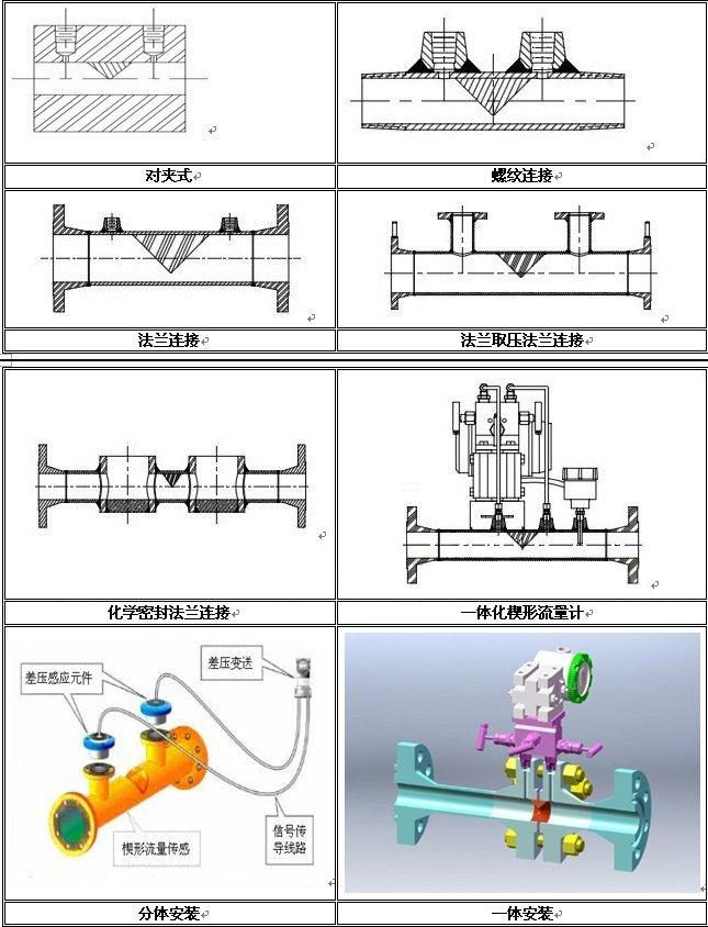 楔形流量計按其組裝方式分為一體型和分離型,按其連接方式分為法蘭連接、焊接連接、螺紋連接及對夾式連接,按其取壓方式分為普通取壓、法蘭密封取壓等結(jié)構(gòu)。