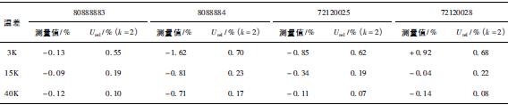 表3-2 累積體積(質(zhì)量法)相對示值誤差測量結(jié)果及其擴(kuò)展不確定度表