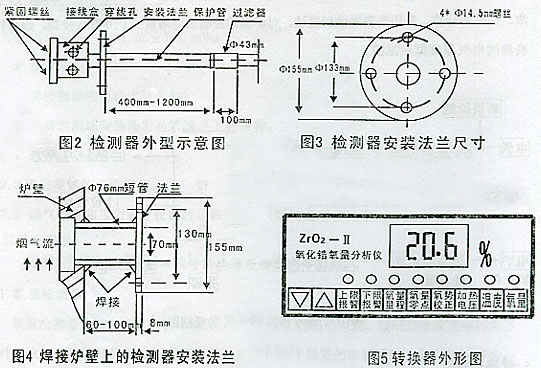 氧量檢測器的安裝參照?qǐng)D3、圖4、進(jìn)行