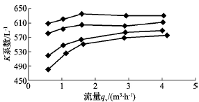 (2)系數(shù)。儀表系數(shù)K是指單位體積的流體通過流量計(jì)發(fā)出的脈沖數(shù),單位為L-1,計(jì)算公式如下: