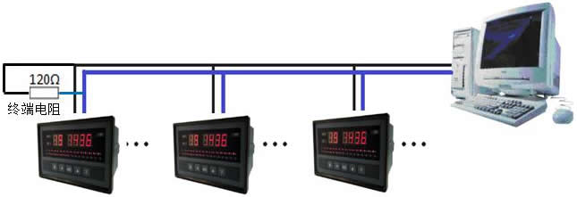 通訊線請(qǐng)使用屏蔽雙絞線,波特率為19200bps以上時(shí),通訊線長度不能超過1000米。在通訊線長度大于100米的條件下進(jìn)行通訊時(shí),為減小反射和回波,必須增加阻值為120歐姆的終端匹配電阻,終端匹配電阻應(yīng)加在RS-485通訊線的最遠(yuǎn)兩端。