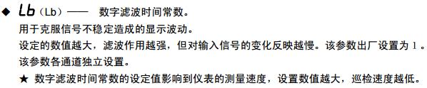 也可以通過儀表軟件參數(shù)Lb來克服信號(hào)不穩(wěn)定造成的波動(dòng),Lb參數(shù)是各通道獨(dú)立設(shè)定數(shù)字濾波時(shí)間常數(shù),提高顯示穩(wěn)定性。