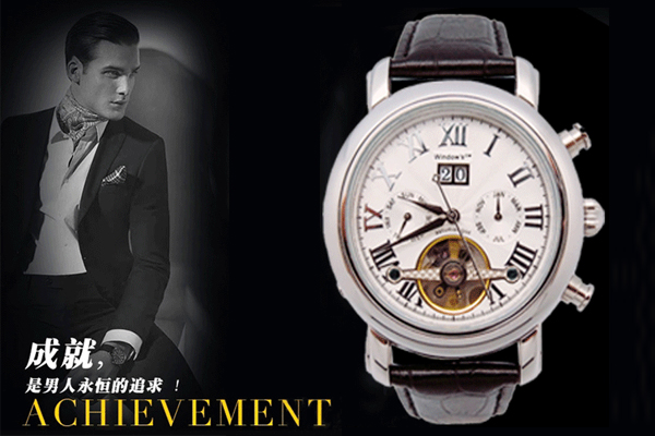 廣東手表廠白色情人節(jié)特別推薦款:商務(wù)男士機械手表