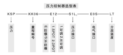 LKKSP壓力控制器:采用膜片式、波紋管、活塞及彈簧管壓元件,普通型可用于對感壓元件無腐蝕作用的氣體、液體或蒸汽等介質(zhì)的場所實現(xiàn)壓力的自動控制。防爆型產(chǎn)品防爆標(biāo)志為ExedllCT6,可用于對感壓元件無腐蝕作用的氣體、液體或蒸汽等介質(zhì)的llA、llB、llC類T1~T6組爆炸性氣體混合物場所實現(xiàn)壓力的自動控制??刂破鞯脑O(shè)定值調(diào)節(jié)范圍為-0.1~40MPa。工作壓力為量程的1.5倍。