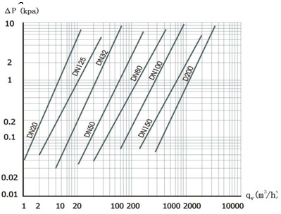 ΔP ¬——介質(zhì)為干空氣時(shí)流量計(jì)的壓力損失(KPa),其特性曲線見下圖