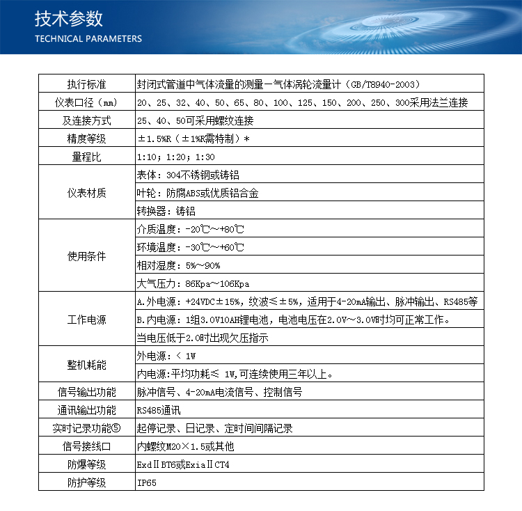 LK-LWGQ系列智能一體化氣體渦輪流量計(jì)是采用先進(jìn)的超低功耗單片微機(jī)技術(shù)研制的渦輪流量傳感器與顯示積算一體化的新型智能儀表,采用雙排液晶現(xiàn)場(chǎng)顯示,具有機(jī)構(gòu)緊湊、讀數(shù)直觀清晰、可靠性高、不受外界電源干擾、抗雷擊、成本低等明顯優(yōu)點(diǎn)。儀表具備儀表系數(shù)三點(diǎn)修正,智能補(bǔ)償儀表系數(shù)非線性,并可進(jìn)行現(xiàn)場(chǎng)修正。高清晰液晶顯示器同時(shí)顯示瞬時(shí)流量(4位有效數(shù)字)及累積流量(8位有效數(shù)字,帶清零功能)。所有有效數(shù)據(jù)掉電后保持10年不丟。該類渦輪流量計(jì)均為防爆產(chǎn)品,防爆等級(jí)為:ExdIIBT6。