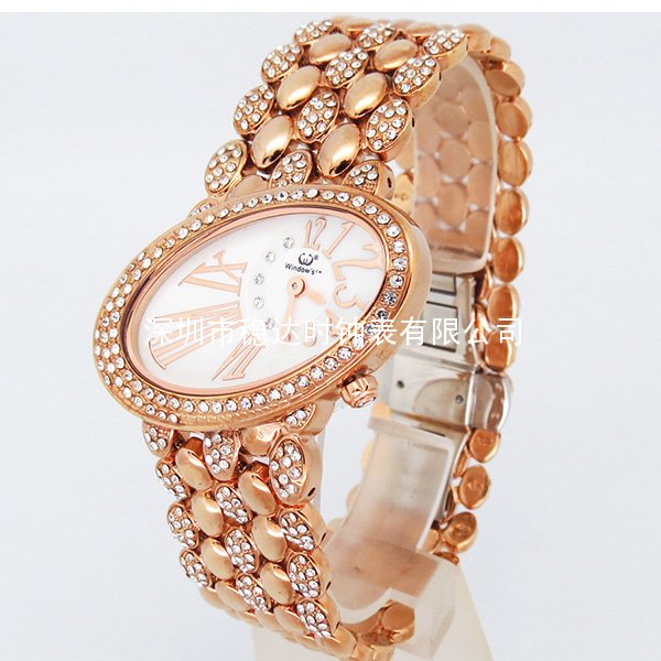【表帶材料】:優(yōu)質(zhì)銅材質(zhì)表帶,鑲捷克石,可以按客人要求定制。